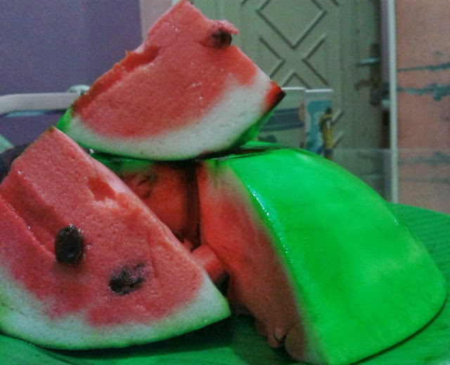 Bikin puding semangka pas cuaca panas gini kayaknya pas banget. Waktu praktek pertama kali sukses...eh, pas bikin yang kedua dan agak banyak ( buat 4 loyang) malah gagal...busa sama agar agarnya misah.